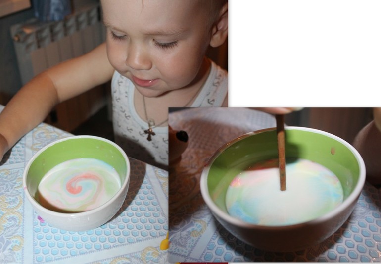 Ещё мы очень хотели провести опыт с молоком и сделать радугу, но что то у нас не очень получилось. Должно было получиться что то типа этого.