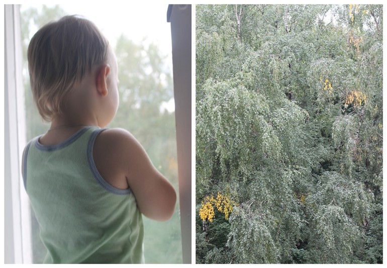Пошли разглядывать с ним берёзки, на которые выходят окна нашей квартиры.