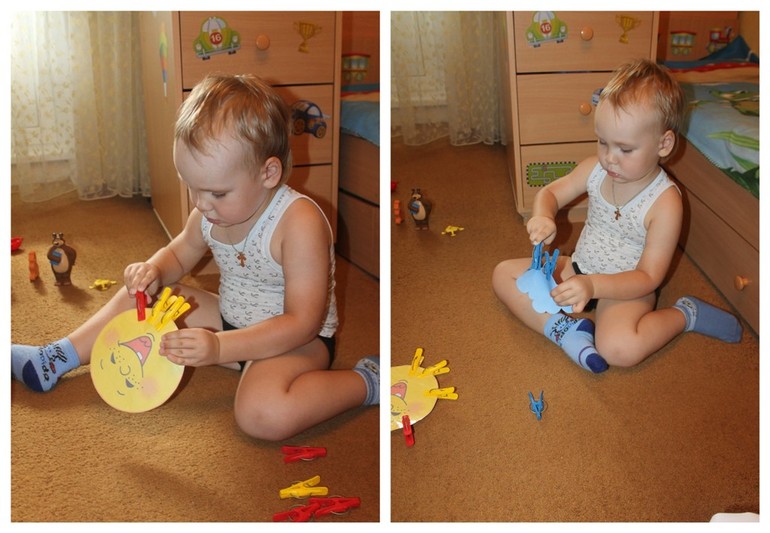 Возвращаемся к осени. Игры с прищепками - делаем солнышку лучики, а тучке дождинки