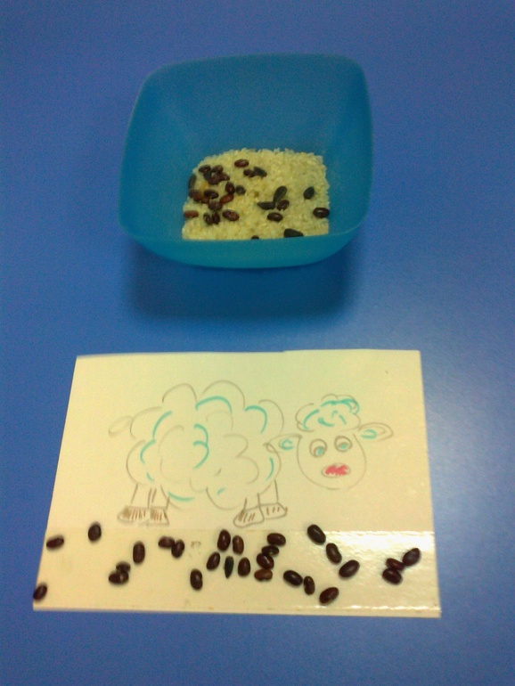 Решили сделать дорожку для нашей гостьи (двойной скотч это классно) Выбираем фасолинки и выкладываем на дорожку.