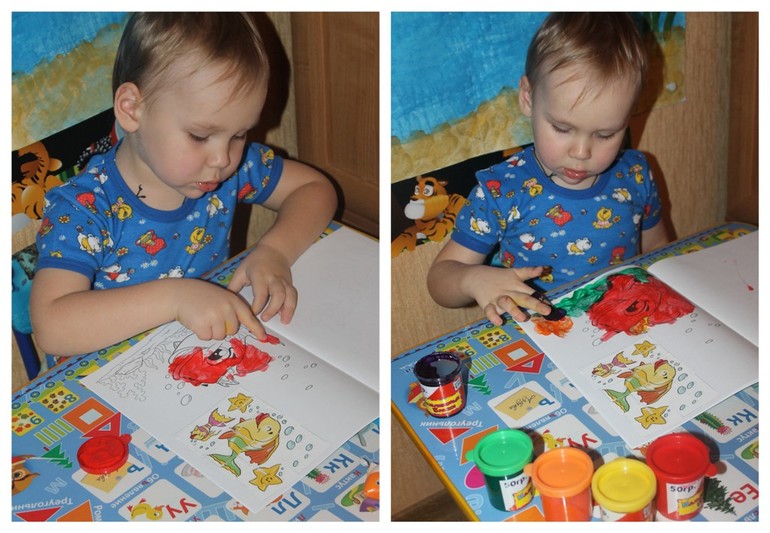Решили тоже с Артёмом сделать золотую рыбку, чтобы загадать желание. Красили пальчиковыми красками.