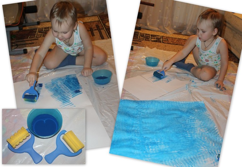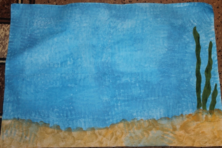 Начали мы с Артёмом накануне вечером. Подготовили наше море. Артём красил с огромным удовольствием.