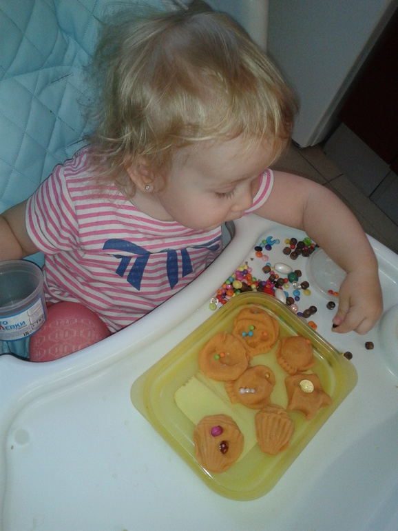 После сна и прогулки мы украшали рыбок и ракушки, из соленого теста, бусинками (на фото все уже изрядно помято))