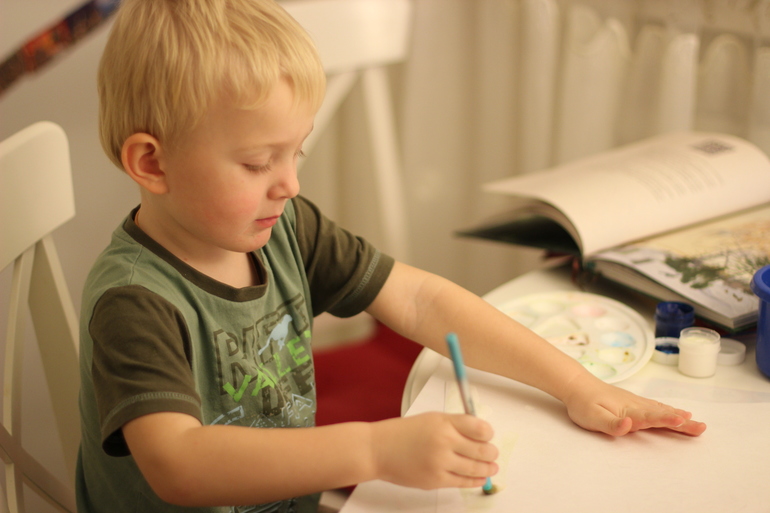 Так Кирюша рисовал зимний лес, гуашью. Завтра мы решили доделать нашу картину, ватой "нарисовать" сугробы, тогда и покажем)