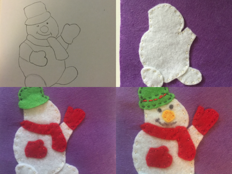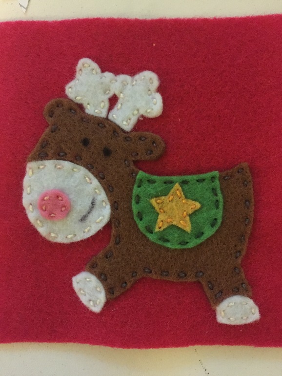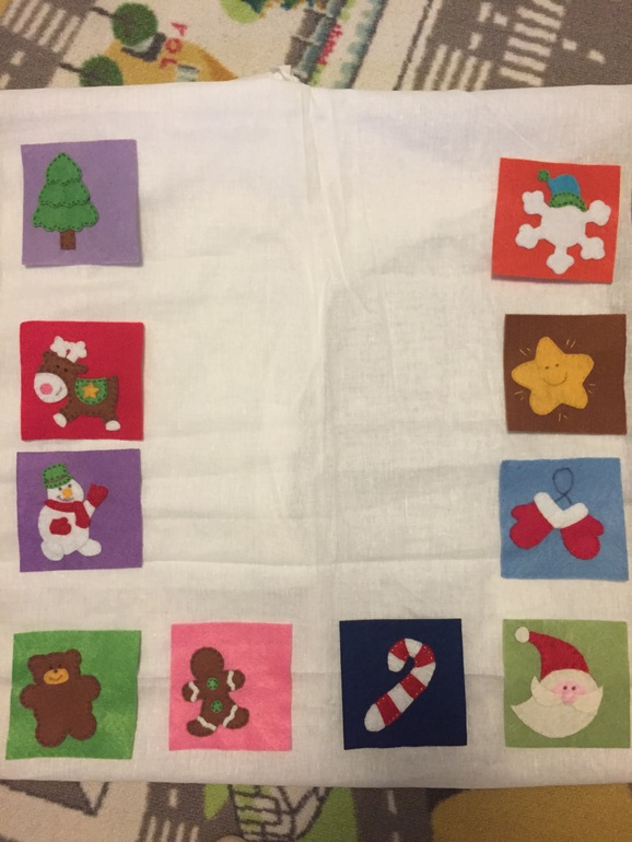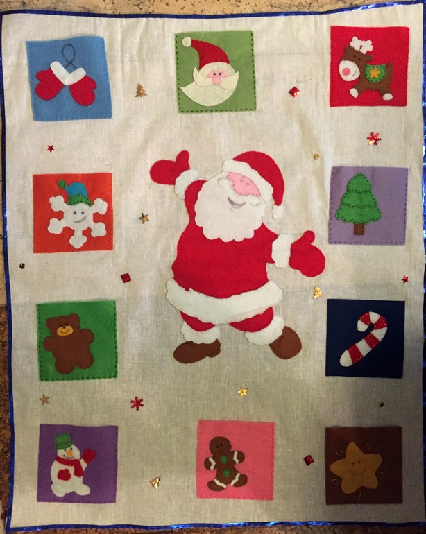Начала шить в начале ноября, в принципе очень быстро пошло дело, примерно по аппликации в день, куда больше времени ушло на пришивание карманов и Санта Клауса.