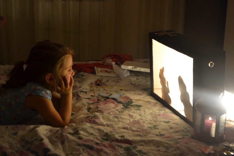 Я буду первой кто коментирует это ЧУДО!!!!!! АААААААА!!!!! ВОСТОРГ!!!!!!! :-))) Лена, как ты сделала театр теней???? Я так хочу!!!! Это коробка, а вместо дня что? Волшебно, сказочно!!!!! Снеговик, олень суперские)))) Сказку про мал.Д.Мороза найду!