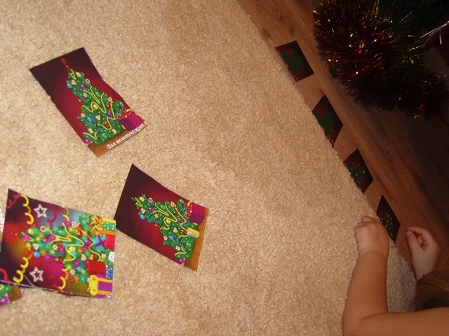Адвент у нас висит с 17.12 (занятие проводили 18-20.12), поэтому мы просто выполняем задания и клеим на овечку ватные шарики. Отсчитываем сколько осталось дней до НГ (учим обратный порядок чисел с 15) и на календаре отмечаем сегодняшнюю дату.