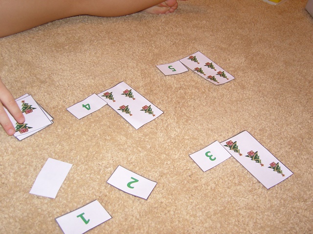 Считали елочки - к количеству подбирали цифру ,затем раскладывали в порядке увеличения и в обратном порядке (3, 2, 1 - уже на зубок выучила)