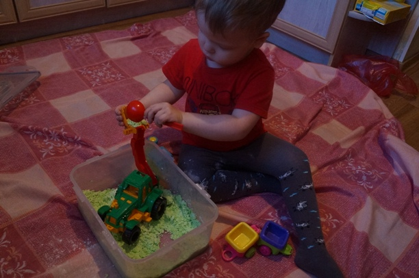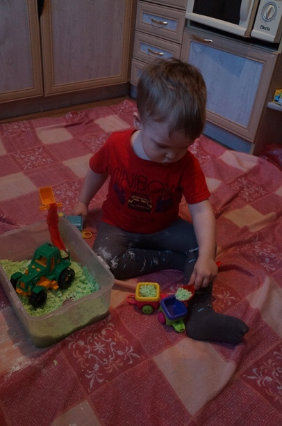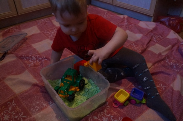 Домашняя песочница (самодельный лунный песок) (крахмал+окраш.вода)