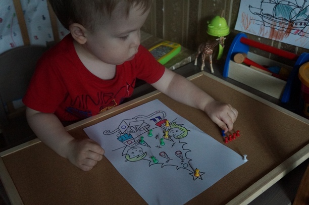 Артемка выполнил примерно 40%, остальное размазывание выполнено мамой)