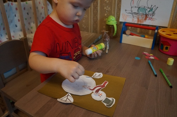 И снеговик! мама вообще не вмешивалась в процесс.. ну и что, что один круг оказался наклеенным на другой круг)) зато САМ))