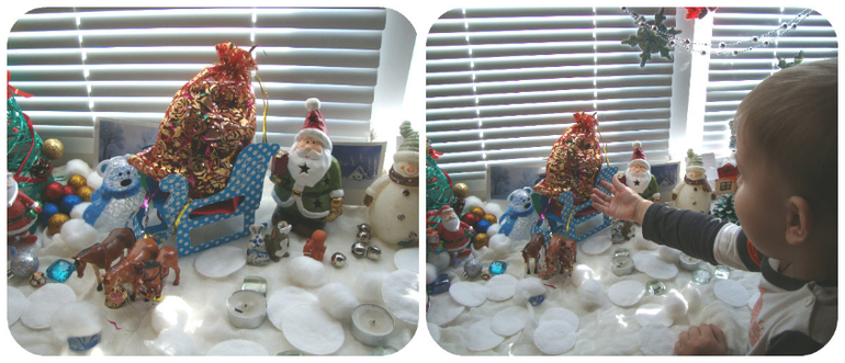 На подоконнике у нас живет новогодняя сказка - там как раз есть тройка лошадей с бубенцами и волшебные сани с мешком подарков.