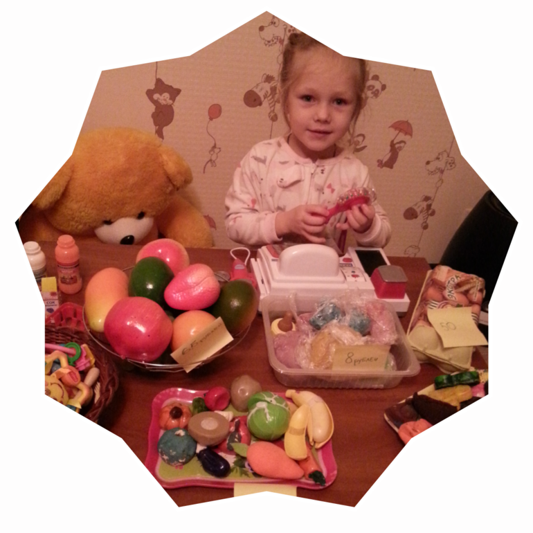 Ну и конечно же игра в магазин)))) Разбирать свой прилавок на ночь для порядка запрещено! А мама с папой частые покупатели =)))