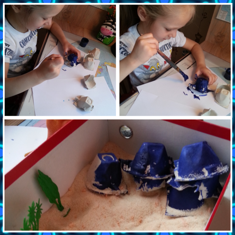 Очень понравились Голубые горы, которые мы решили сделать, покрасив ячейки от яиц:
