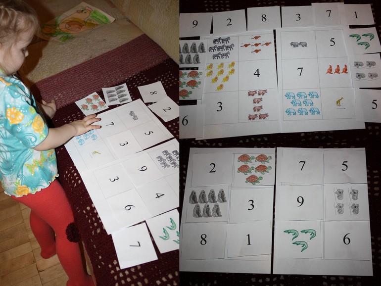 6. Посчитали животных и поставили соответствующую цифру, и наоборот, к цифре подобрали соответствующее количество животных.