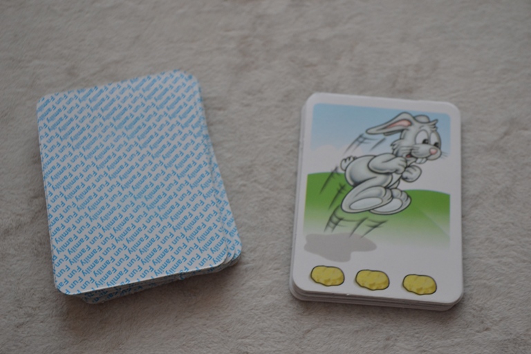 Берем карточку и смотрим, что нам выпало. Если прыгающий зайка, то переставляем своего зайчонка на столько кружков вверх, сколько указано на карточке