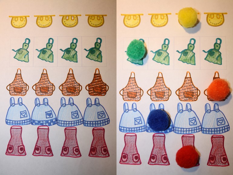 8. Нашли пары одежды -- положили помпоны.
