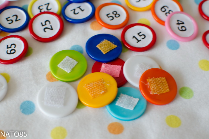 На пуговицы я приклеила кружки с цифрами - от 1 до 80 обычным клеем-карандаш.