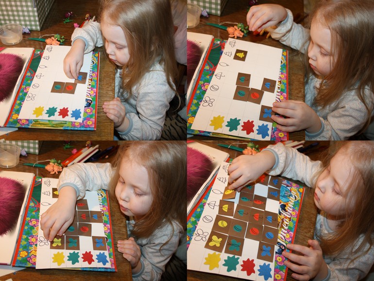 3. Распределяли предметы на место в соответствии с цветом (игра сделана давно, даже не помню, где увидела ее, а вот играть стали только сейчас).