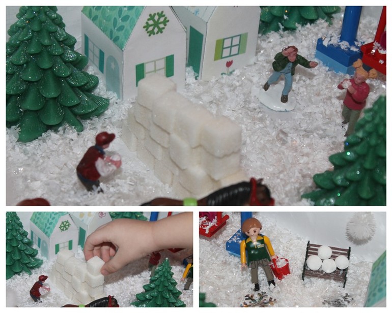 Построили вместе с Артёмом горку, смастерили санки и устроили соревнования - кто дальше съедит на санках.