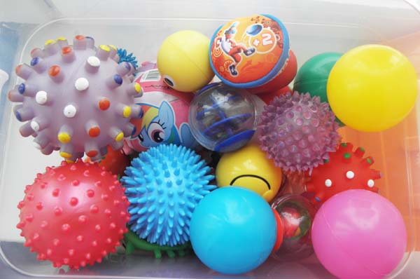 - из чего делается Снеговик? Из снежных шаров. Достаем нашу коробку с шарами, мячиками, играем с ними, массажные мячики катает в ручках: