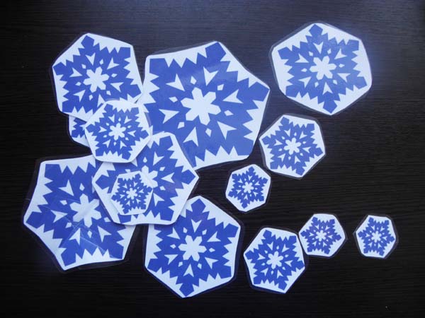 - играла с такими ламинированными снежинками - мяла их, разбрасывала, дула. Пытались вместе сортировать маленькие и большие.