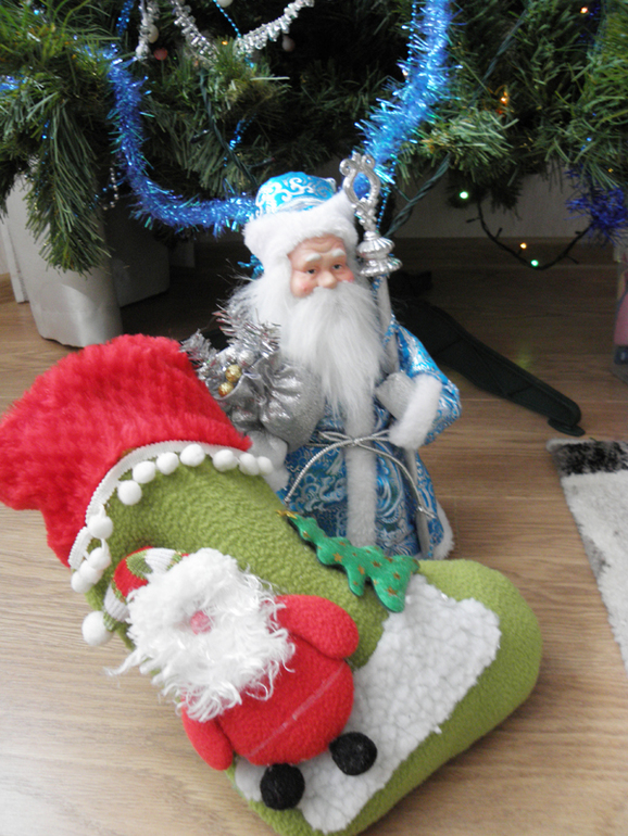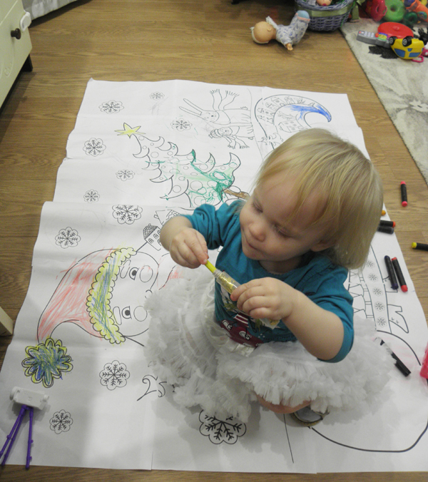 - Участвует в совместном разукрашивании большой раскраски с Дедом Морозом, спасибо