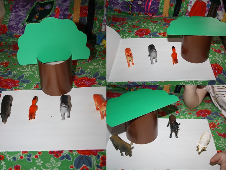 3.Игра "Кто спрятался?" (фигурки и дерево).