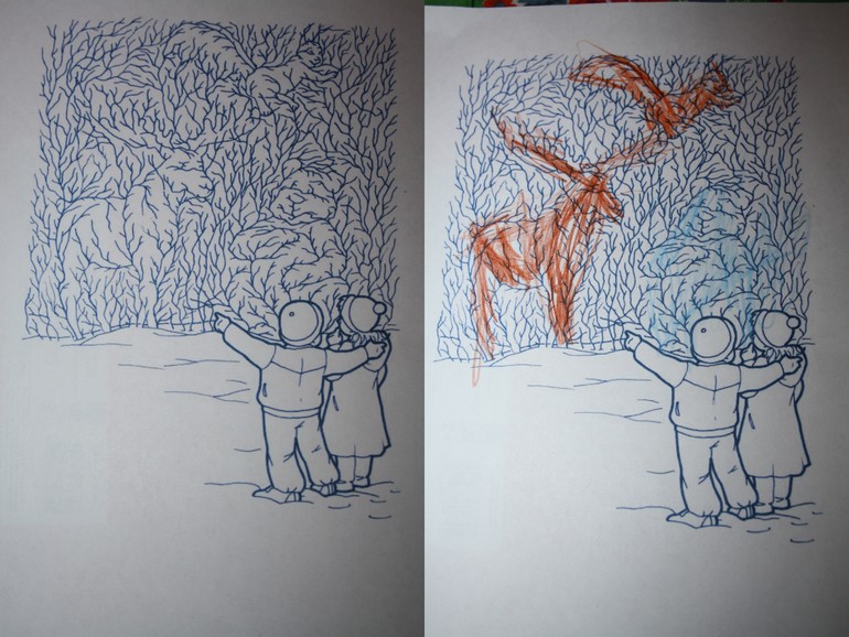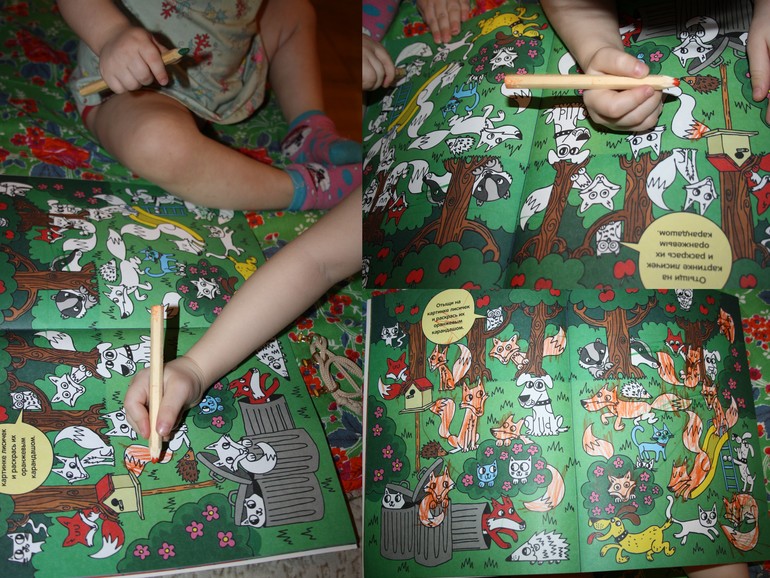 12. Выполнили задание из книжки "Умные дети. Раскраска" (нужно было найти и раскрасить всех лис).