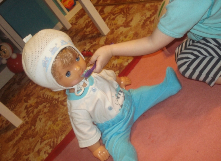 Легенда такая - "У куклы Кати заболел зубик, потому что она не хотела чистить зубки и ела неправильные продукты..." (прости, Катя!)