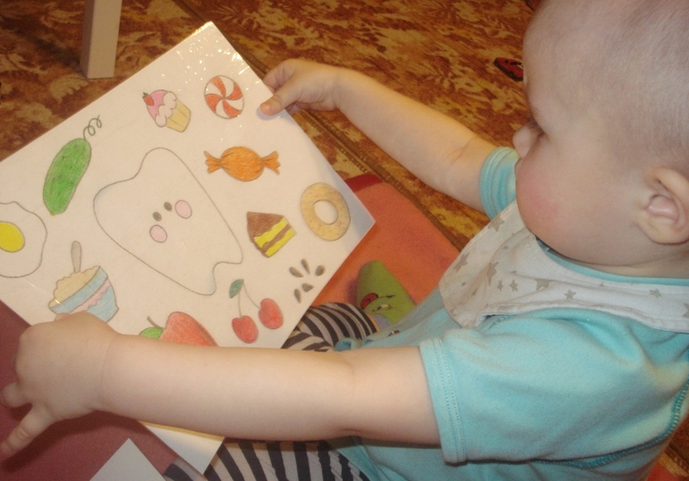 Снова любовался на картинку с зубиком и продуктами. Жадно смотрел на неполезные продукты, показывал на конфетку и на свой рот, призывно смотрел на меня...