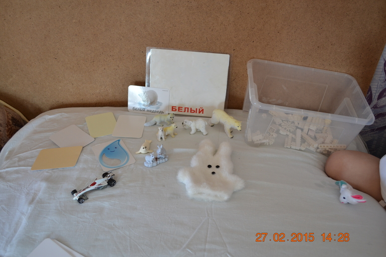 Искали дома предметы, одежду белого цвета, в основном это оказалась бытовая техника и немного одежды. А ещё нашли контейнер с различными белыми предметами (заранее мною подготовленный).