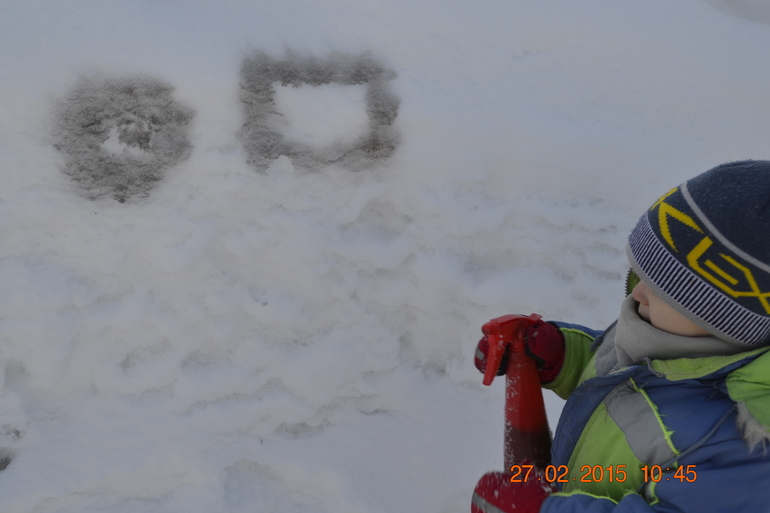 4. Рисовали на снегу палочкой, черной краской из пульверизатора (изучали геометрические фигуры);