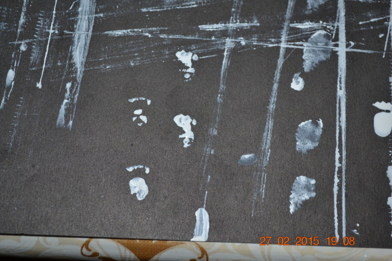 Замир на этом не остановился, он изрисовал белой гуашью машины, медведей, руки, яблоко, себя, стол, маму))) Потом всё это долго мыл под краном и вытирал)))