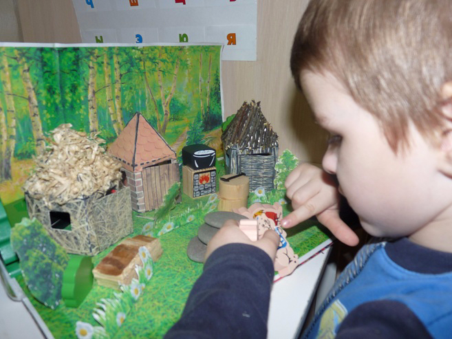 А после дневного сна увидели Это! Здесь Артём пропал надолго, сам пересказывал сказку, прятал поросят, копал, ставил катёл, дул на домики. А в конце волк не ошпарился кипятком. у Артёма был свой финал. Поросята выкопали яму для волка и он рядом с ними жил, охранял их.