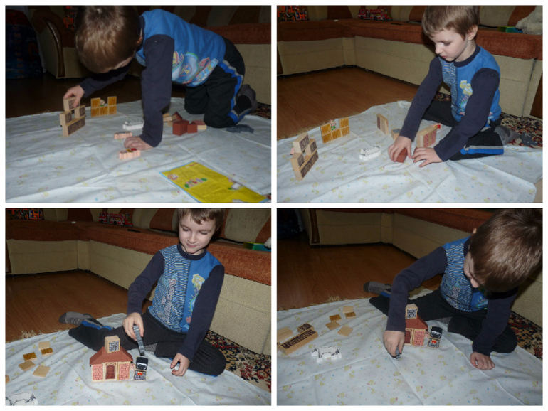 И попробовали поиграть в поросячье мемори. Сначала несколько пар взяла, но Артём быстро нашёл, понравилось. Усложнили, тоже почти сразу справился. Почему мы раньше не играли...