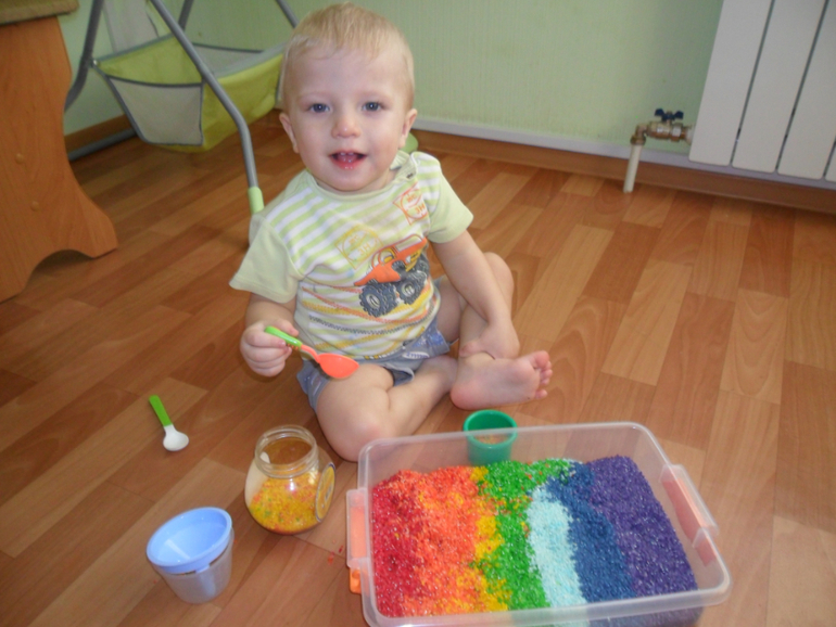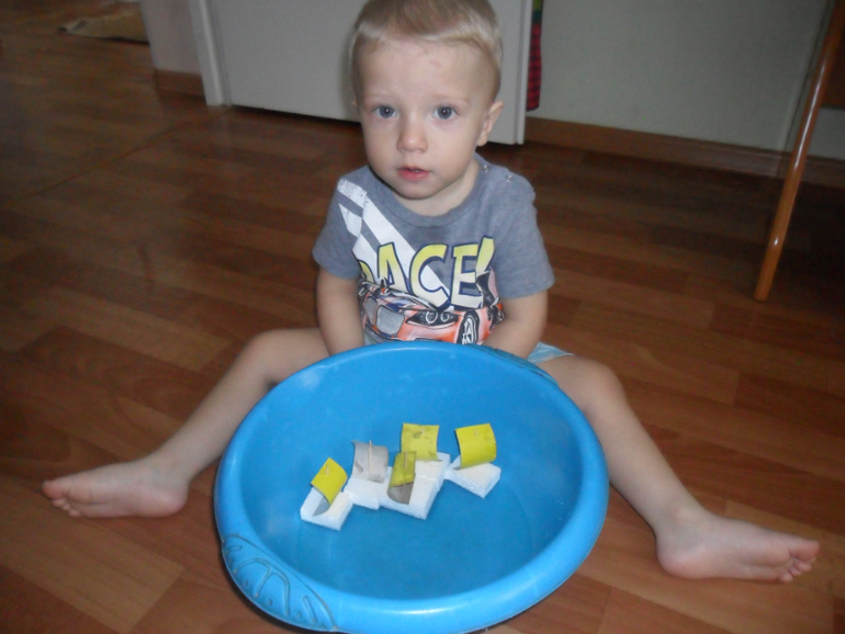 Ну а потом показывала детям рисование на молоке, им так понравилось, что просили сделать несколько раз. Вечером играли еще вот с такой сенсорной коробкой, Рома подпрыгивал от удовольствия, да и мне самой очень понравилось. И уже перед сном клеили аппликацию с обоими.