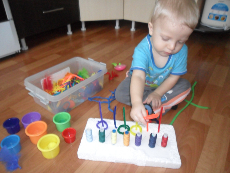 Потом искали нашим игрушкам домики, развязывали ленточки радужные, играли с самодельной радугой (Рома правда все облачки по отрывал)
