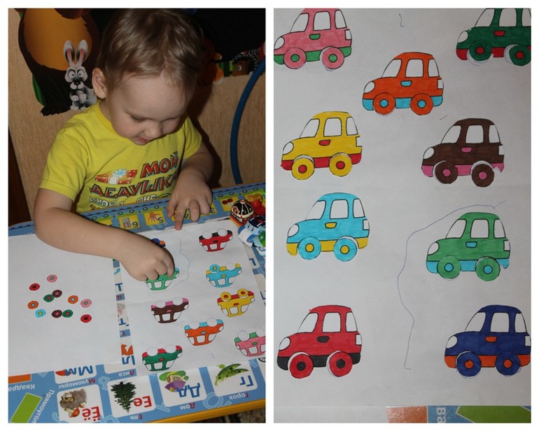 8) Поиграли в игру "Парковка". Я заранее подготовила карточки. Задачей Артёма было расставить машинки на парковке по образцу. Первую сделали вместе, потом всё было понятно.