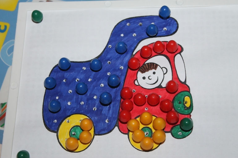 6) Мозайка. Подготовила для Артёма картинку. До конца выкладывать не захотел.