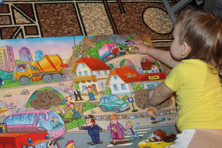 1) Начали мы с макси-пазла - развиваем пальчики. Артём очень любит собирать пазлы. У нас их огромное множество.