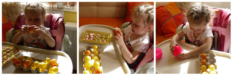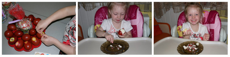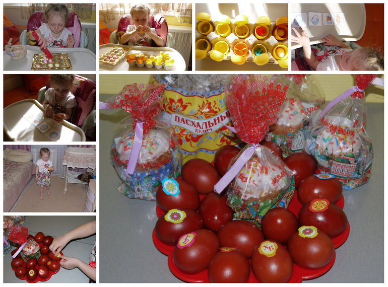 7. Вечером уже красили и украшали яички. Ну и разве можно удержаться от такого соблазна, Лиза съела одно, при этом почистив.