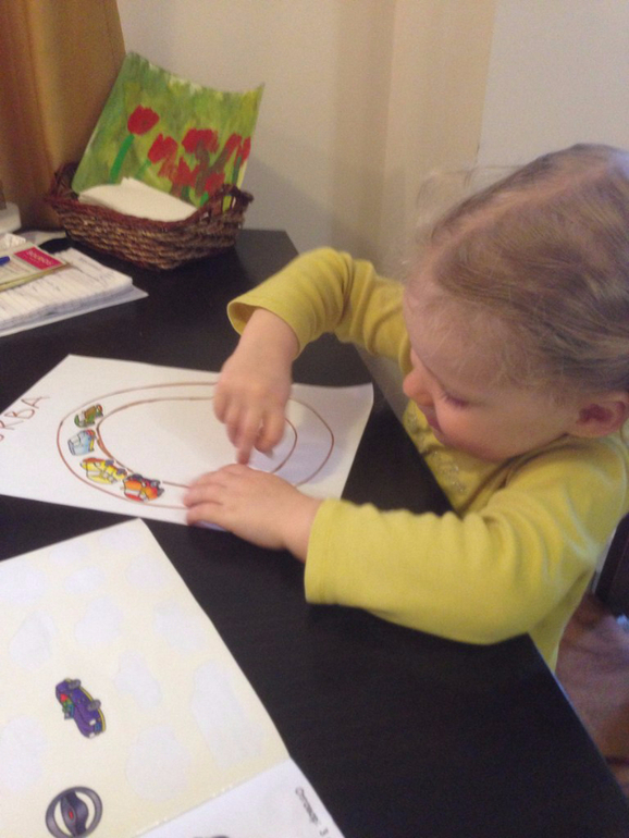 Недавно купили наклейки лошадок и машинок, теперь вся квартира в лошадках и машинках, пусть и буква будет красивой)