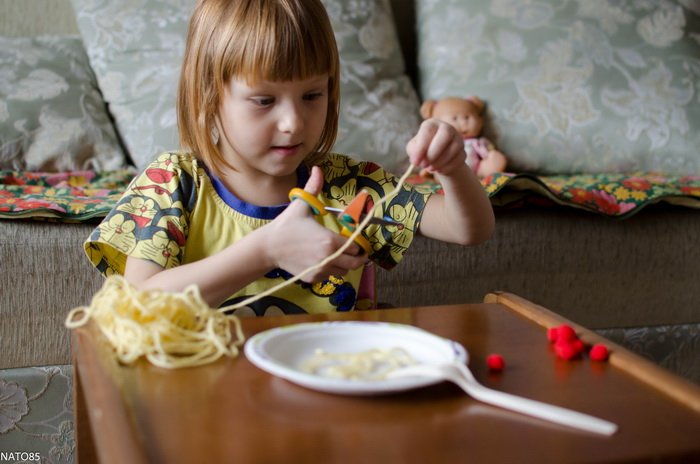 Далее перешли к Итальянской кухне! Ножницами сделали спагетти.