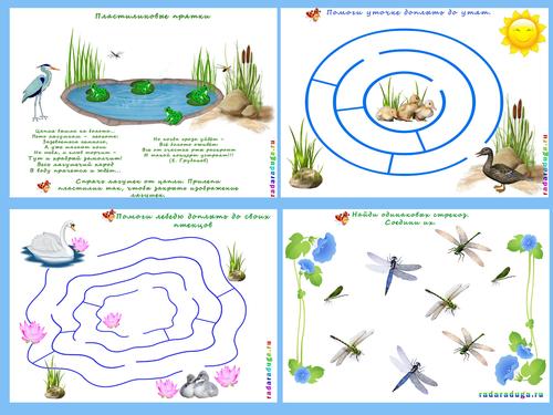 6. Лабиринты, пластилиновые прятки, найди одинаковых стрекоз:
