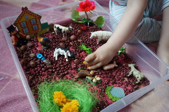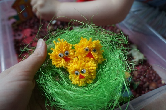 Сперва была у нас тематическая коробочка со всякими домашними животными и самодельными птенчиками!