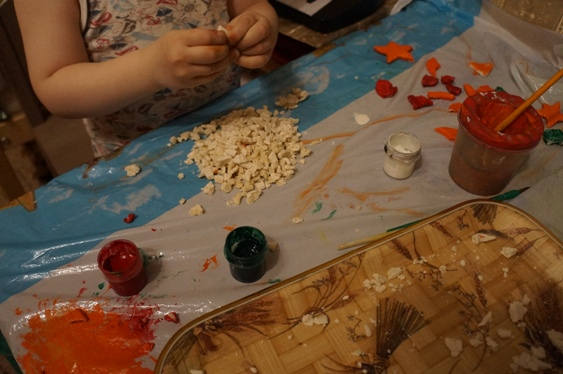 днем перед прогулкой пока я одевалась он подлез к ней и все СЛОМАЛ!!!!!!! ))))) разрушитель! ну что ж... не особо растроилась, но пожурила. Решала, что большие куски все равно раскрасить, типа космические астероиды.. но их так было мало, что в итоге и они были сломаны))