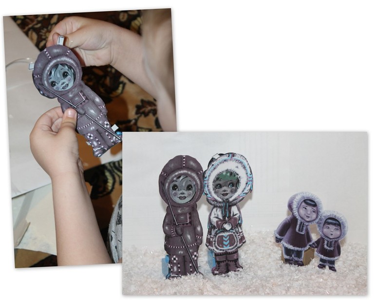 Теперь можно рассмотреть и одежду, в которой ходят местные жители. Обращаем внимание, что она очень тёплая. Одеваем наших путешественников, чтобы они не замёрзли.