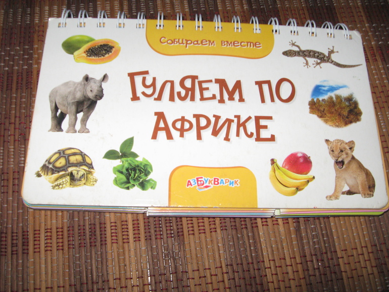 Развивающая литература, наклейки, тесты. Все что развивает и развлекает ребенкаКак хорошо, что в наше время есть книги, которые можно не только читать, но и играть с ними! Когда дочери было 4 года мы приобрели небольшую книжечку на спирали с разрезными страничками "Гуляем по Африке".