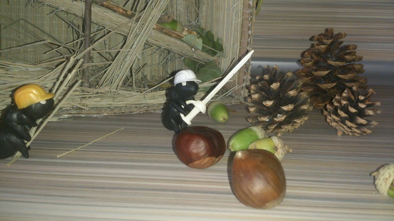 Это солдат в белой шапке со шпагой! Он защищает муравейник от врагов!